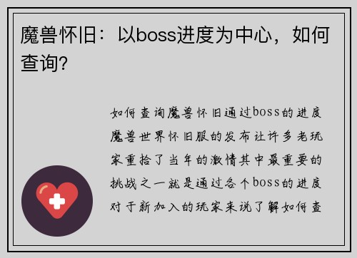 阅读介绍 魔兽怀旧服是许多玩家追忆经典的游戏版本,其中猎人职业一直以其独特的射击技能而备受玩家喜爱。在移动中射击是猎人职业的一项重要技巧,能够在战斗中提高输出和生存能力。本文将详细介绍魔兽怀旧服猎人如何在...