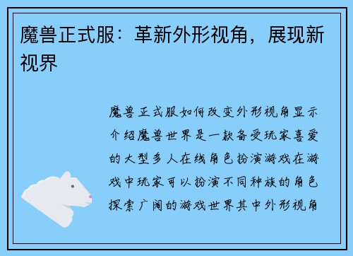 阅读1. 宠物对战系统介绍 魔兽世界的宠物对战系统是一种战斗模式,玩家可以通过收集、培养和训练宠物,组成自己的战斗队伍与其他玩家进行对战。这个系统提供了丰富多样的宠物种类和技能,玩家可以根据自己的喜好和策...